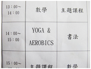 每次開學都很期待的第二個星期終於到來了,因為從這星期開始,學校所有的科任課正式開始上課,包括英文、書法還有…咦?這個Yoga & Aerobics是什麼啊?